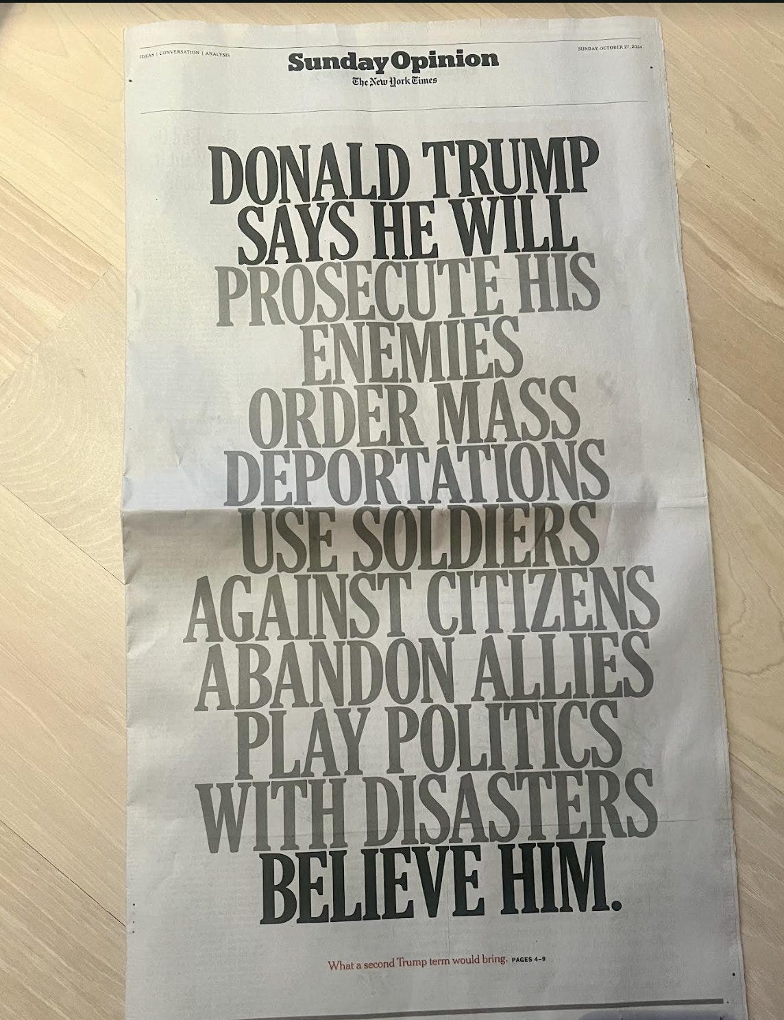 They had everything but the Sieg Heil last night. They have taken off the masks. No dog whistles, just blatant, ugly nativism and racism. It must be defeated and defeated by large margins. Once that line is crossed, and these people get power, they’ll never allow a free election again. Yes, it’s that bad, and if you believe otherwise, I’ll leave you with this.