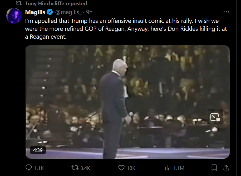 And to top it off, Hinchcliffe has the audacity to compare himself to Don Rickles, who was a Jew, and would be offended at this talentless hack.